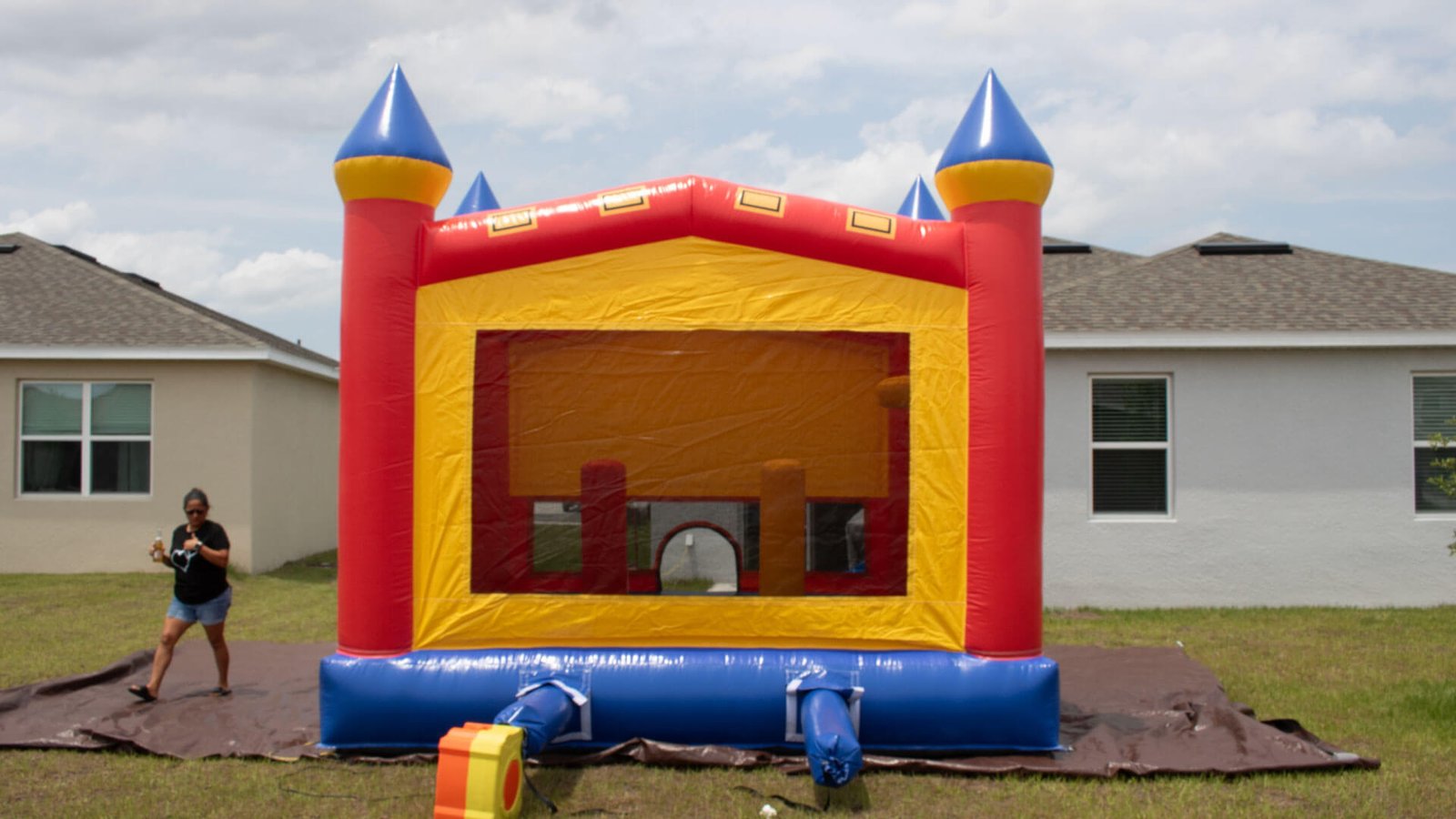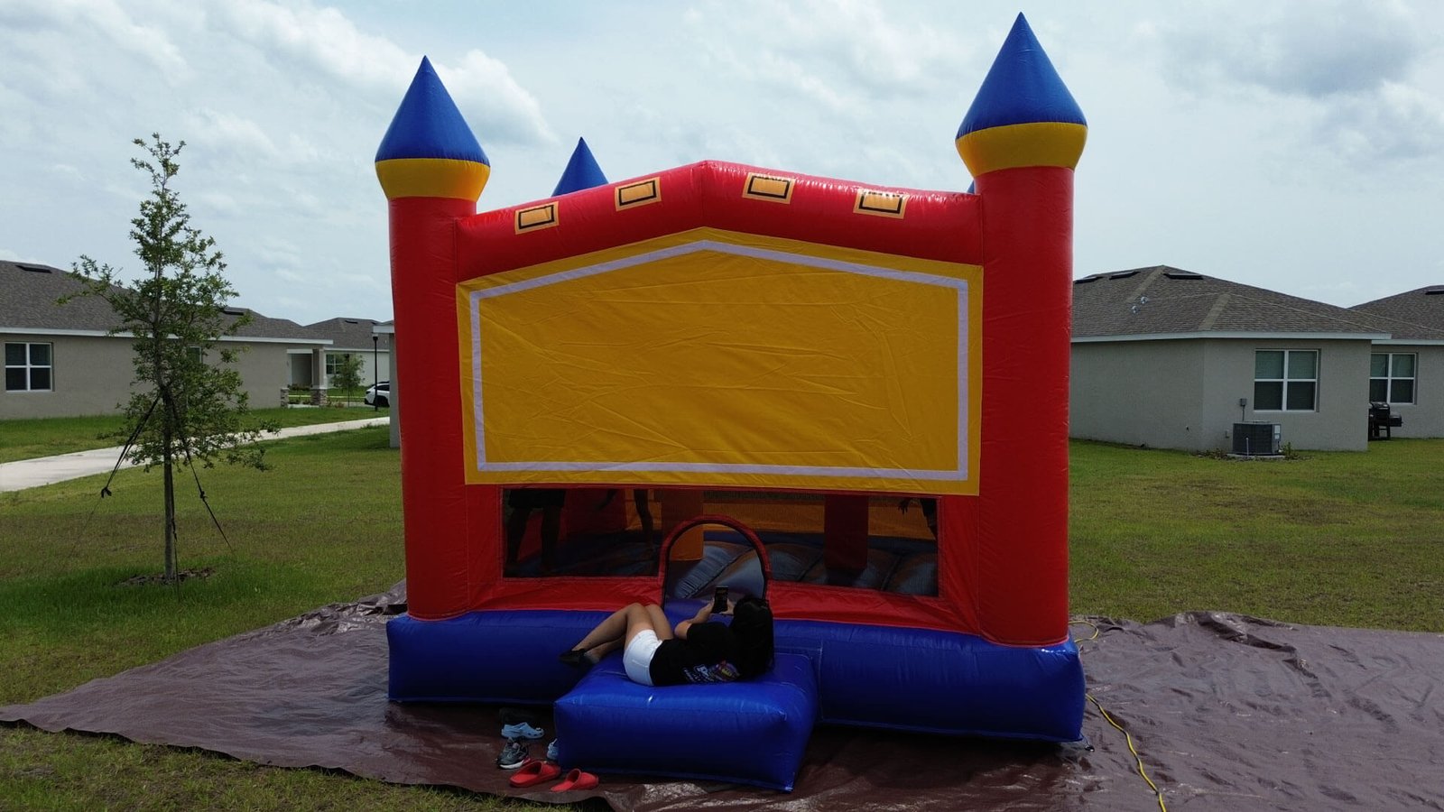 Diseño Versátil: Con su diseño clásico y colores brillantes, esta casa inflable se adapta a cualquier tema de fiesta o evento, proporcionando un atractivo visual que encanta a niños y padres por igual.